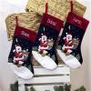 Our Beautiful Christmas Santa Stockings are embroidered with a name of your choice. Measures 19in x 8in and are decorated with santa and his sack of presents Ready to ship in 3 working Days. Makes a a special personalised christmas decoration