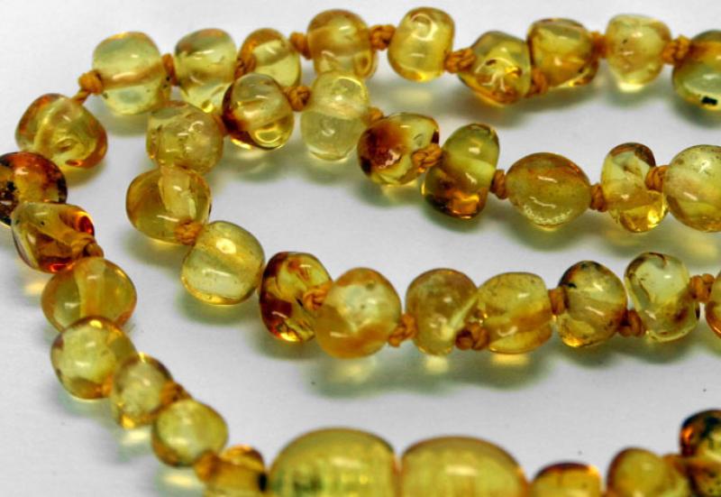 Genuine Baltic amber teething necklaces are a traditional European remedy for baby teething, which have been used for centuries. A natural analgesic, amber will help to calm baby without the use of over-the-counter drugs and remedies. Wearing the Baltic amber close to the skin, allows the release of natural healing oils from the fossilised tree resin to help infants stay calm and more relaxed during teething.